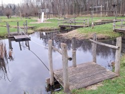 In het Openluchtmuseum in Arnhem ligt een trekpontje om te laten zien hoe men vroeger het water kon oversteken.