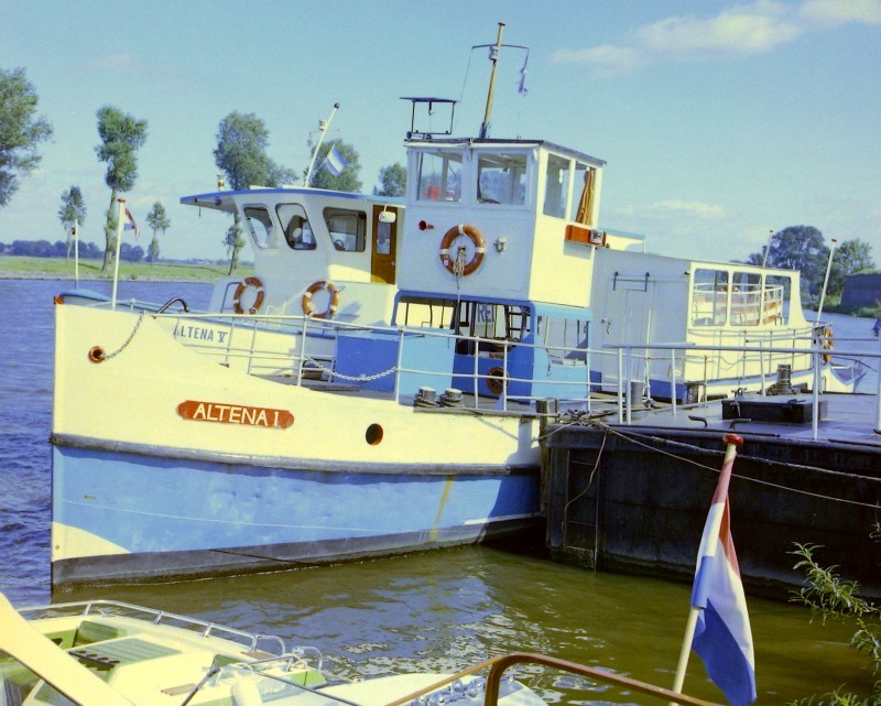 | Opmerking | Oorspronkelijk stoomboot met naam IJssel 4 in Gouda. In 1935 naar rederij Janihudi. In de Tweede Wereldoorlog zwaar beschadigd, daarna in 1947 ombouw naar motorboot en uiterlijk veranderd. Capaciteit vergroot tot 380 passagiers. Van 1949 tot 1957 inzet als rondvaartboot vanuit Maastricht. In 1965 hernoemd in Altena 2 In 1968 verkocht naar België als Lohengrin als nachtclub. In 1985 naar Namen als President. Sloop in 2009 |