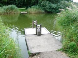 In het recreatiegebied Twiske bij Den Ilp ligt een klein pontje.