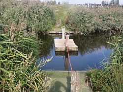 Naast de wijk Breewijd in Edam ligt natuurpark de Broeckgouw. Daar ligt een trekvlot om op een schiereilandje te komen.